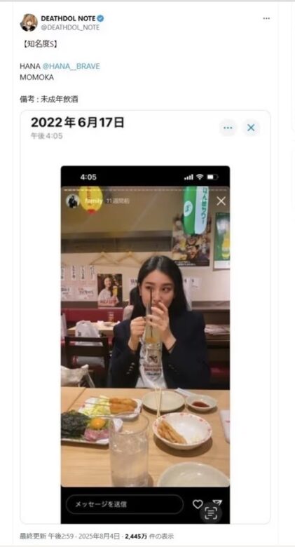 HANAの人気が一気に高まる中、メンバーのももか(MOMOKA)に炎上騒動が浮上して話題になってるよね。